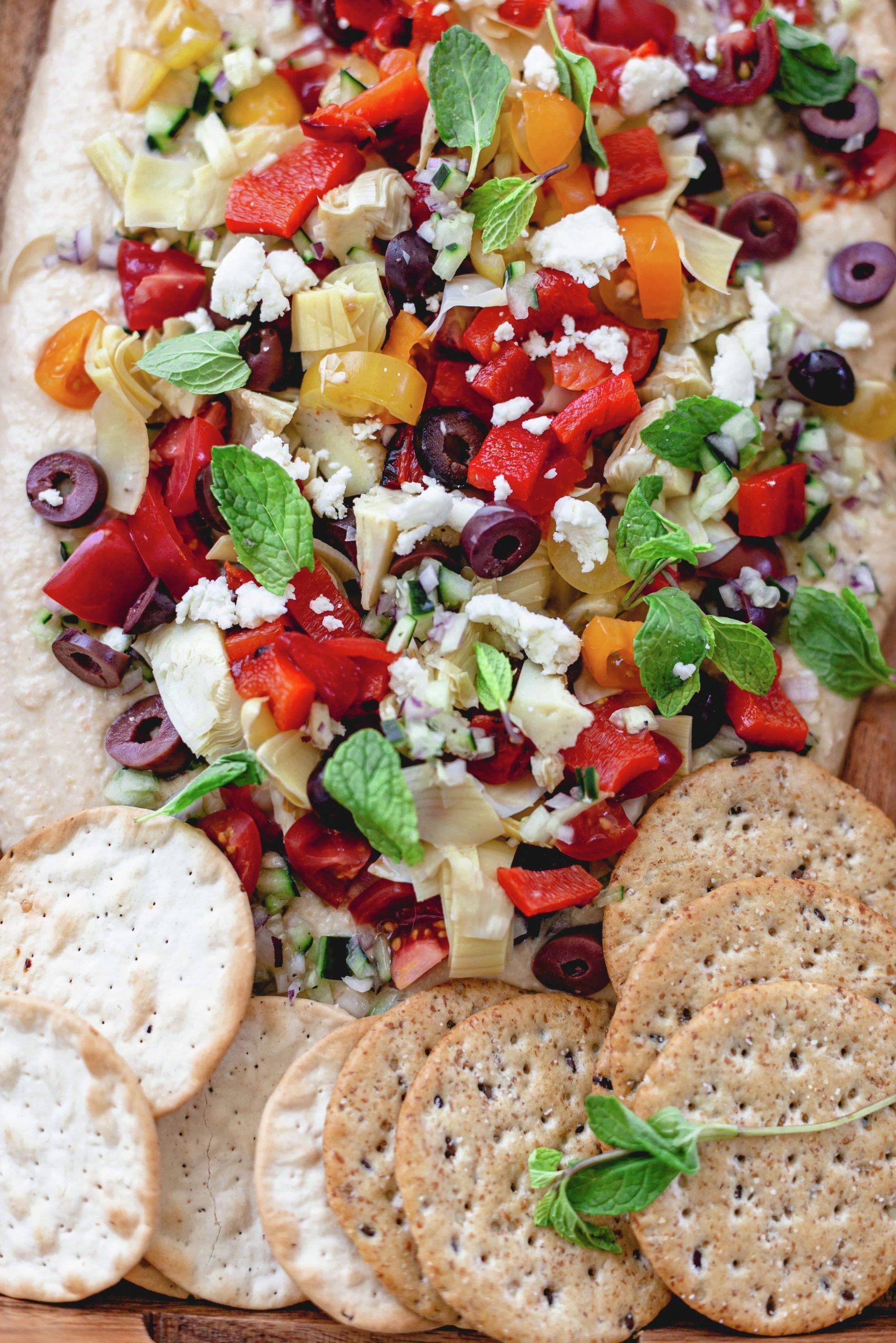5. Layer the ingredients over hummus.