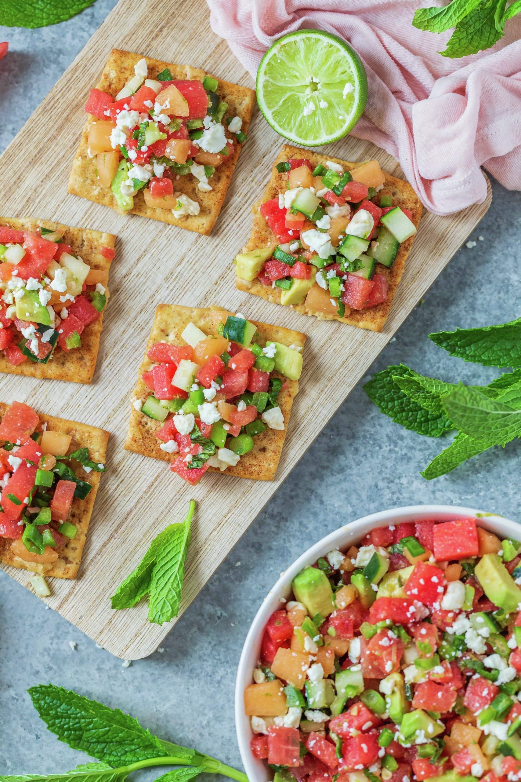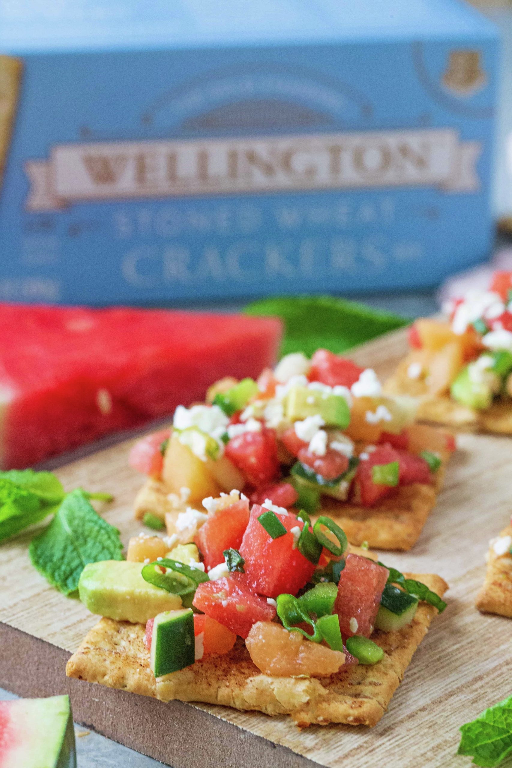 2. Toss remaining ingredients together into a bowl and serve with cinnamon stone wheat crackers.